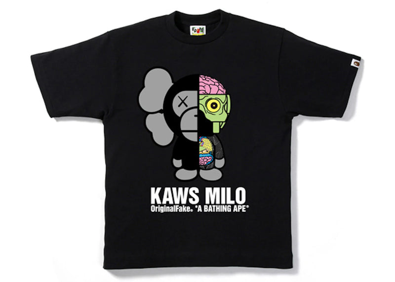 The BAPE X OriginalFake Kaws Companion Milo Tee Black/Black is now available at Side Kicks!
