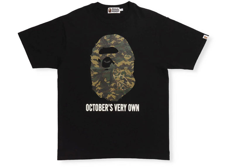 The BAPE x OVO Woodland Camo Ape Head T-shirt Black is now available at Side Kicks!