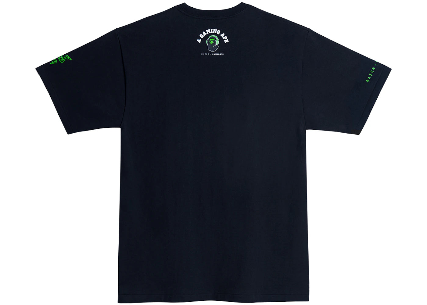 The BAPE x Razer NEon Camo Ape Head Tee Black Green is now available at Side Kicks!