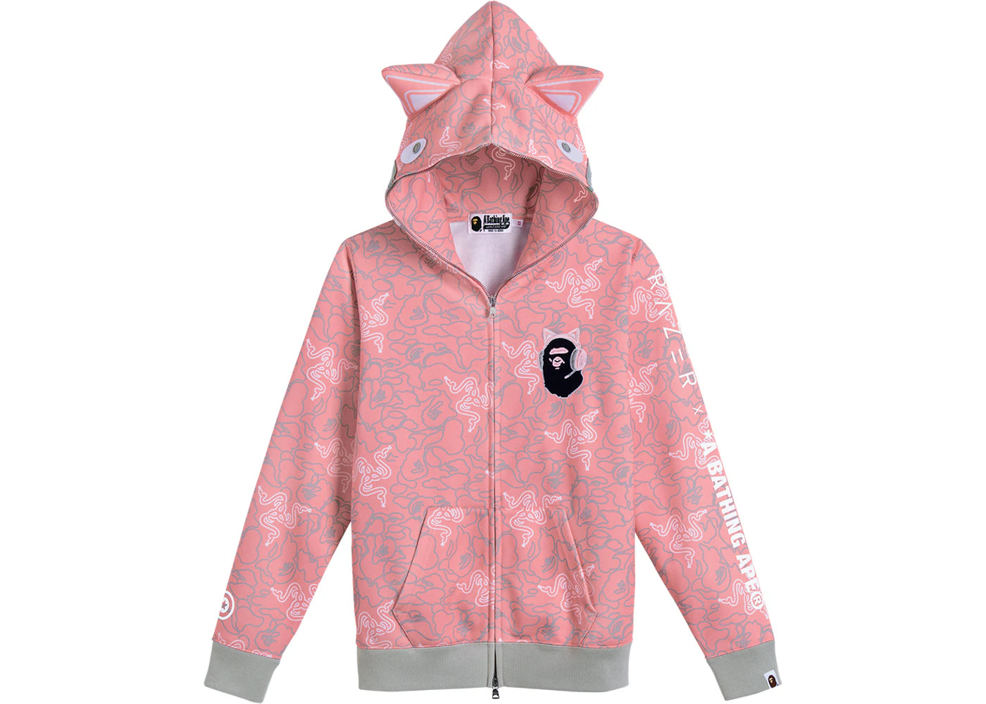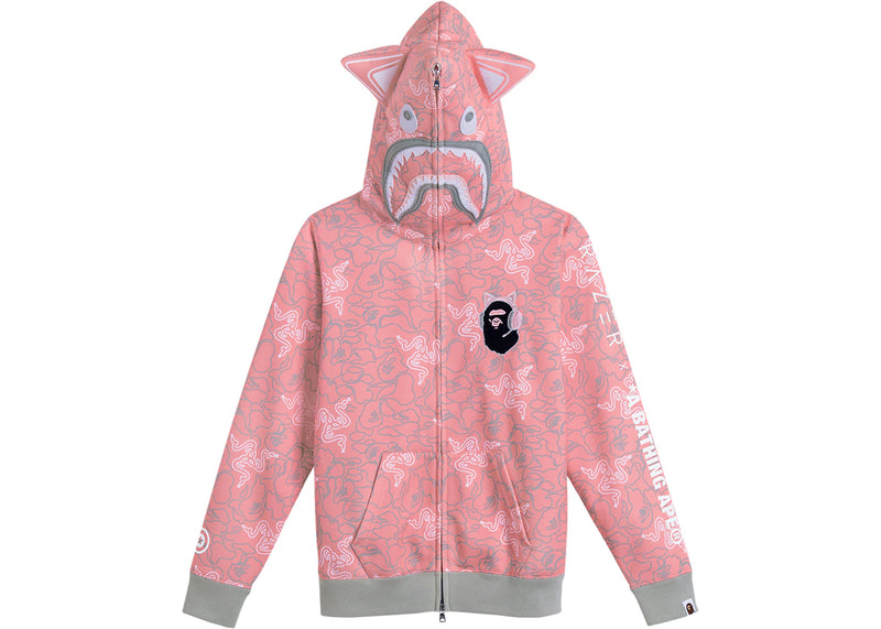 BAPE x Razer Neon Camo Shark Full Zip Hoodie Pink