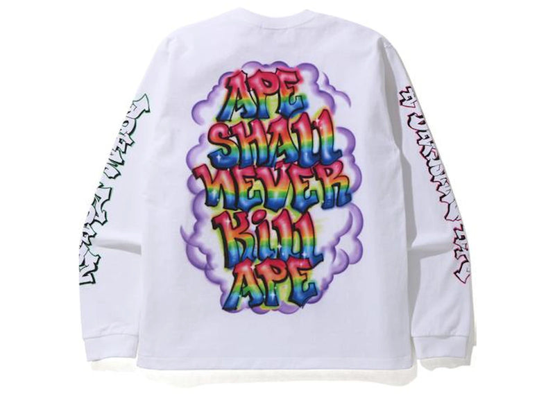 The BAPE x READYMADE Spray Wide L/S Tee White is now available at Side Kicks!