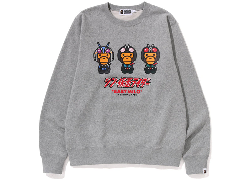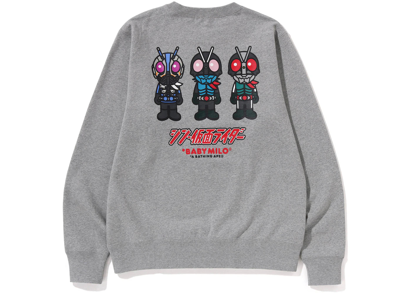 The BAPE x Shin Kamen Rider Baby Milo Crewneck Grey is now available at Side Kicks!