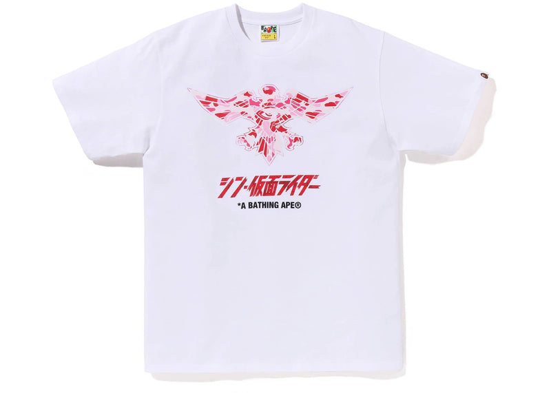 The BAPE x Shin Kamen Rider Shocker Emblem Tee White Pink is now available at Side Kicks!