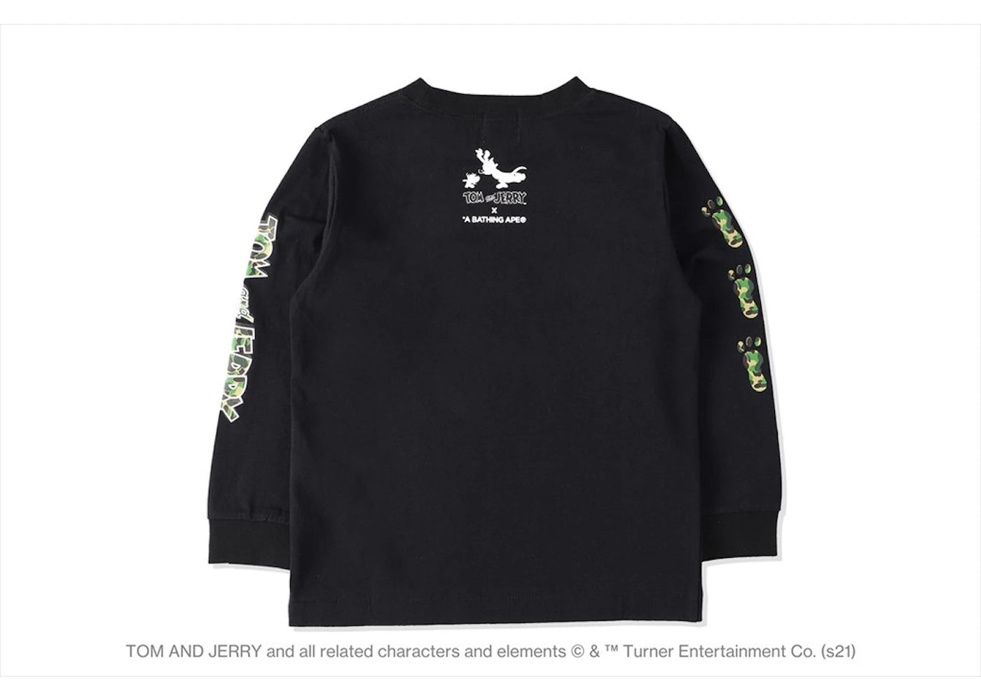 The BAPE x Tom and Jerry Footprints Kids L/S Tee Black is now available at Side Kicks!