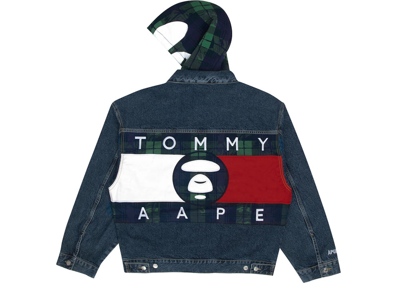 The BAPE x Tommy Checked Hood 2way Denim Jacket Blue is now available at Side Kicks!
