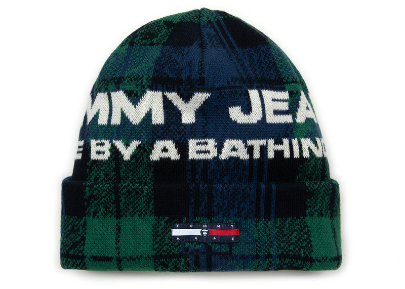 The BAPE x Tommy Logo Jacquard Knit (AAPE Exclusive) Beanie Navy Green is now available at Side Kicks!