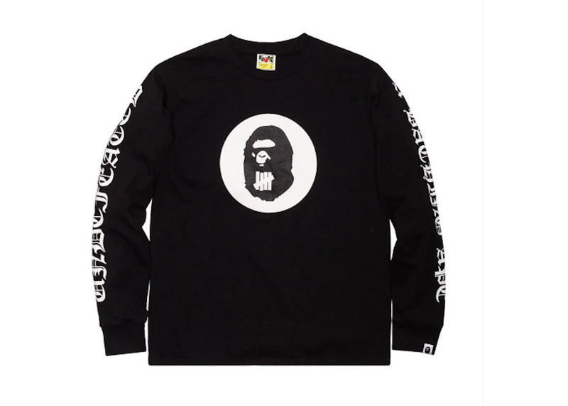 The BAPE X Undefeated Mr Cartoon 5 Strike Logo Apehead Long Sleeve Tee Black is now available at Side Kicks!