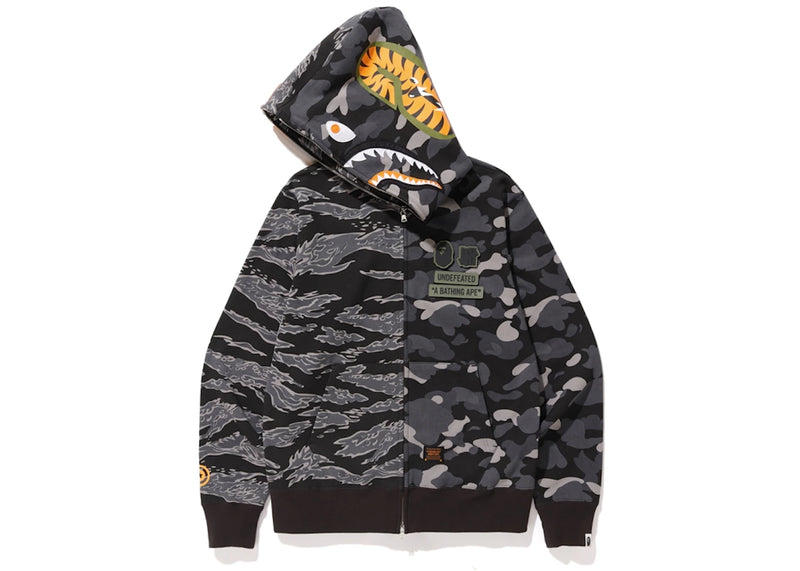 The BAPE x Undefeated Tiger Shark Half Full Zip Hoodie Black is now available at Side Kicks!