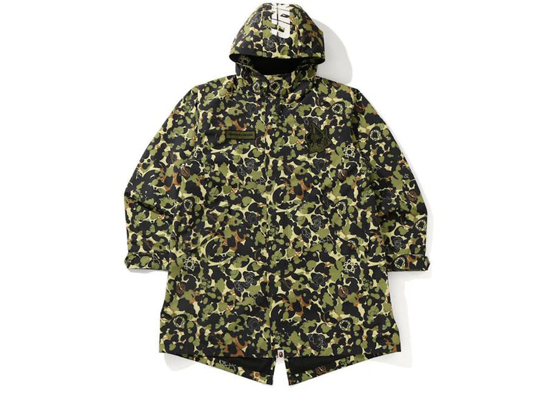 The BAPE x UNKLE MWA CAMO M-51 Hoodie Jacket Green is now available at Side Kicks!