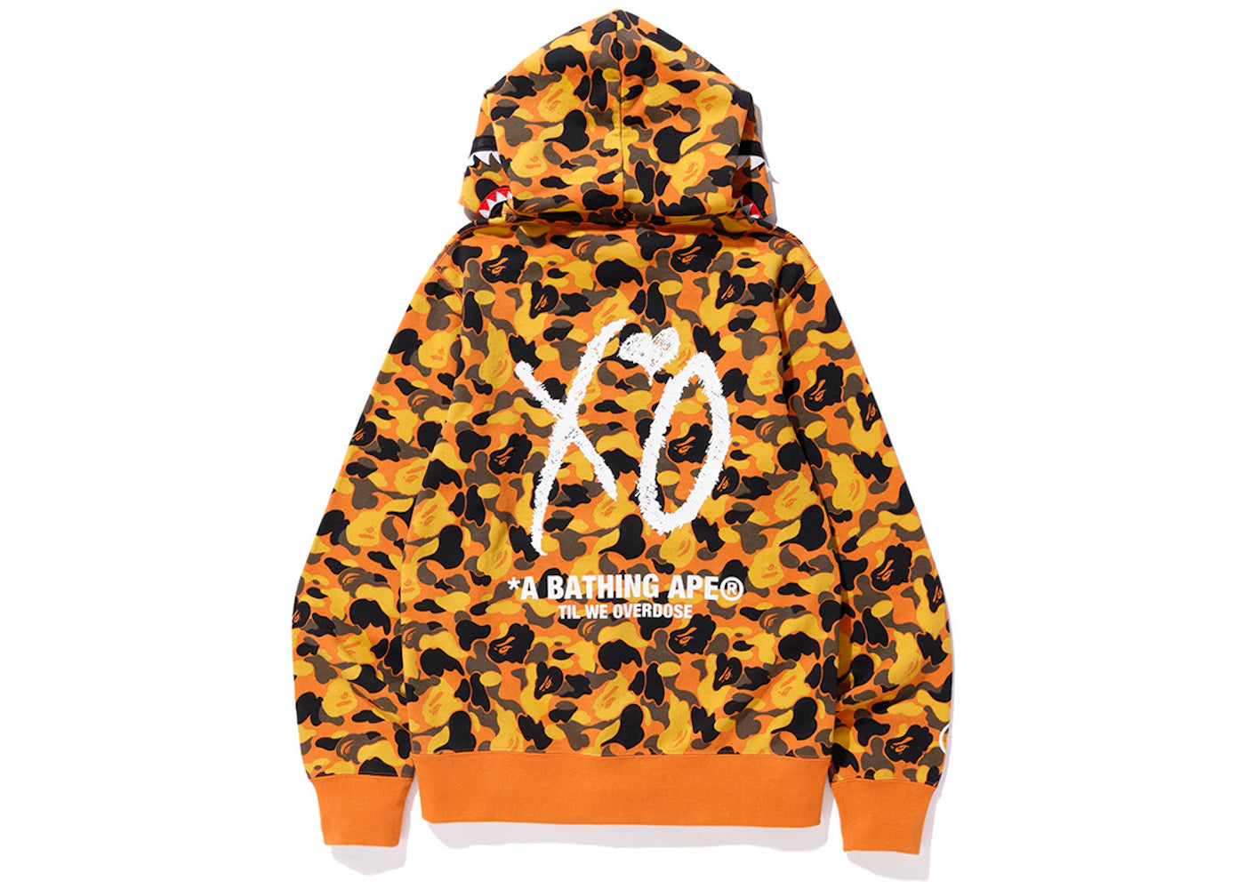 The BAPE x XO Shark Pullover Hoodie Orange is now available at Side Kicks!