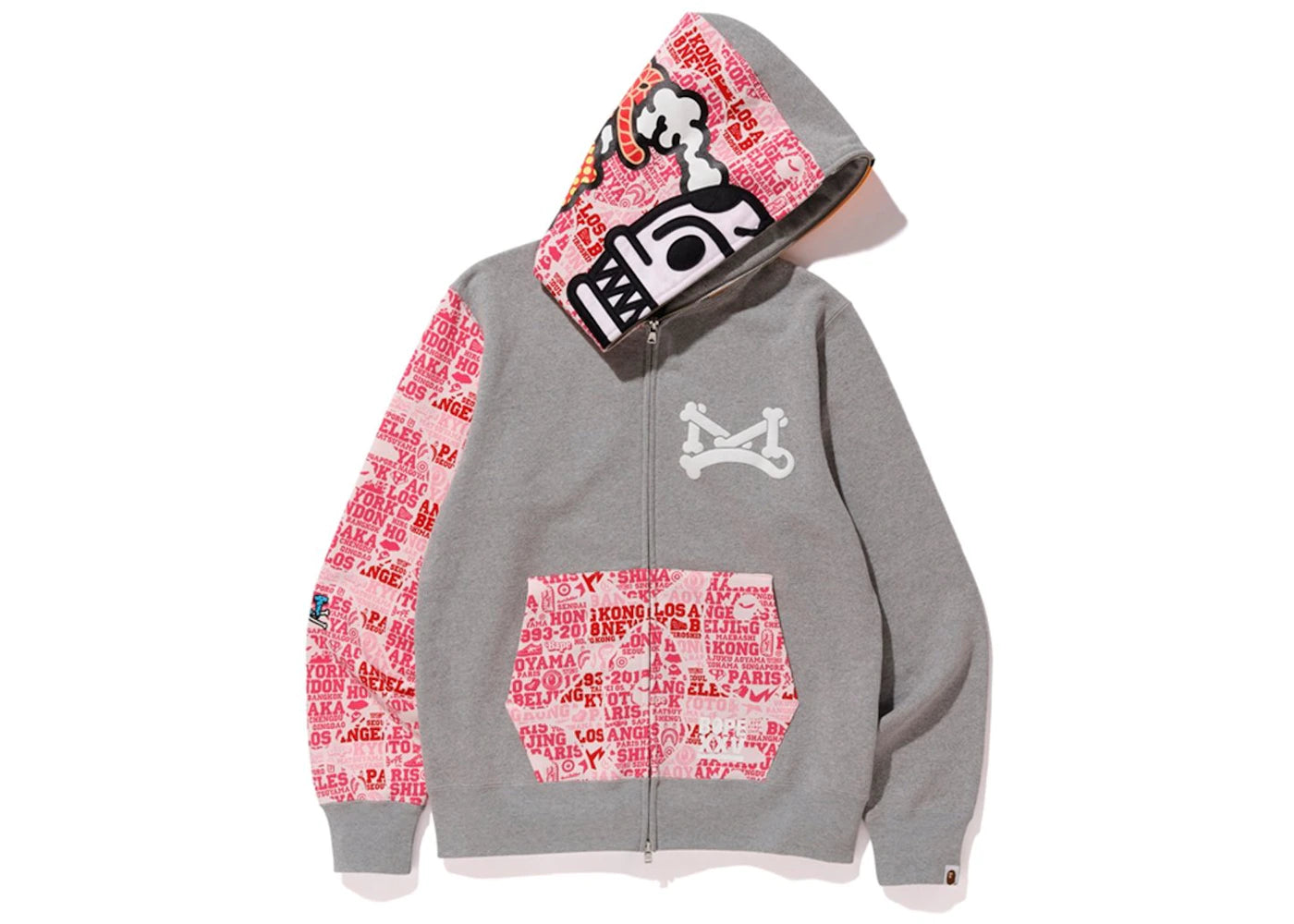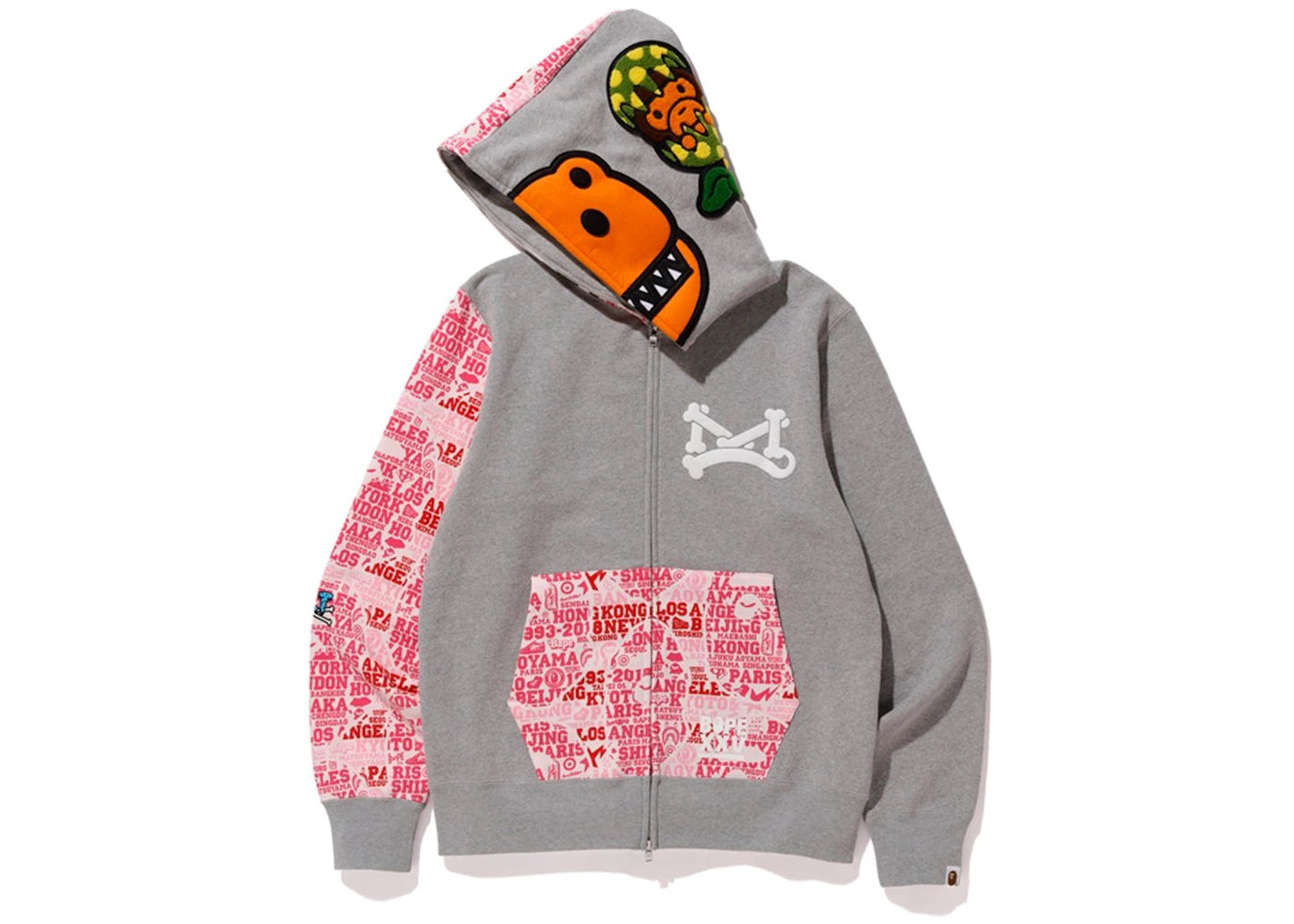 BAPE XXV Cities Camo Milo Jurassic Rex Full Zip Hoodie Grey/Pink
