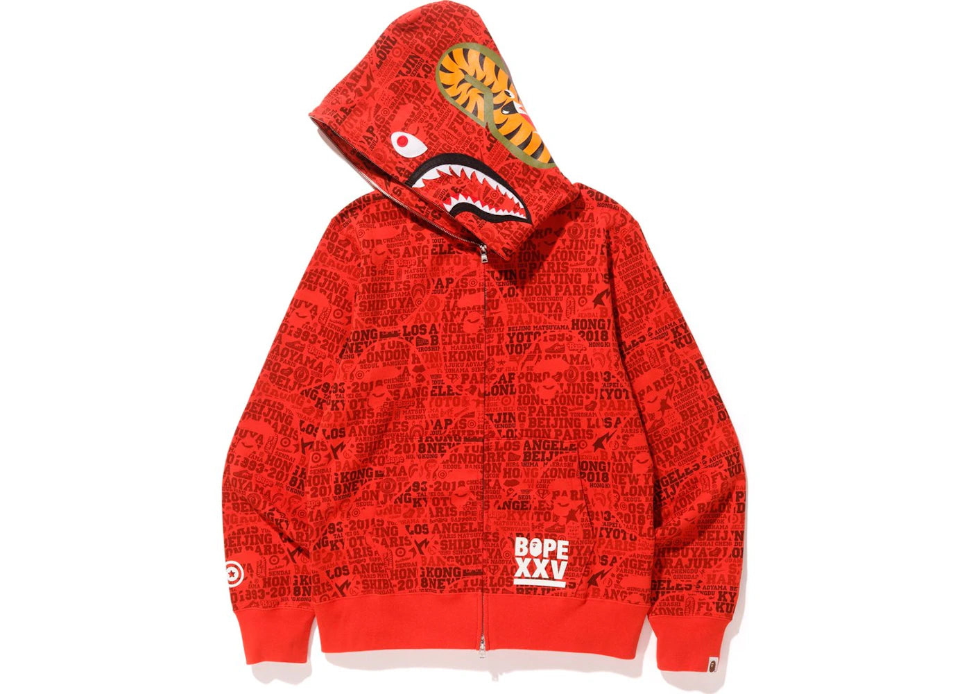 BAPE XXV Cities Camo Shark Full Zip Hoodie Red