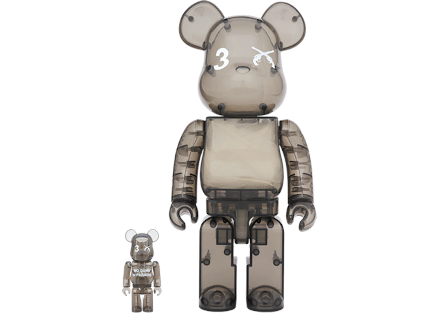 The Bearbrick 3. Paradis x Roarguns 100% & 400% Set Clear Black is now available at Side Kicks!