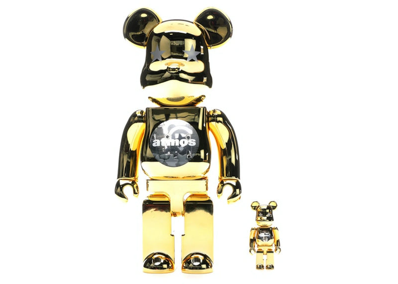 The Bearbrick Atmos Gold Chrome 100% & 400% Set Multi is now available at Side Kicks!