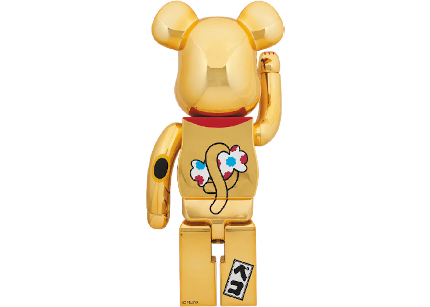 The Bearbrick Beckoning Cat Peko-Chan 1000% is a 27.5-inch gold-plated figure from Medicom Toy’s collaboration with Fujiya Company. It depicts Peko Chan, the Milky candy mascot, styled as a manekineko...