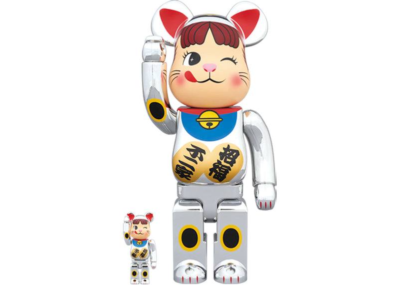 Bearbrick Beckoning Cat Peko Chan Silver Plating 100% & 400% Set Silver