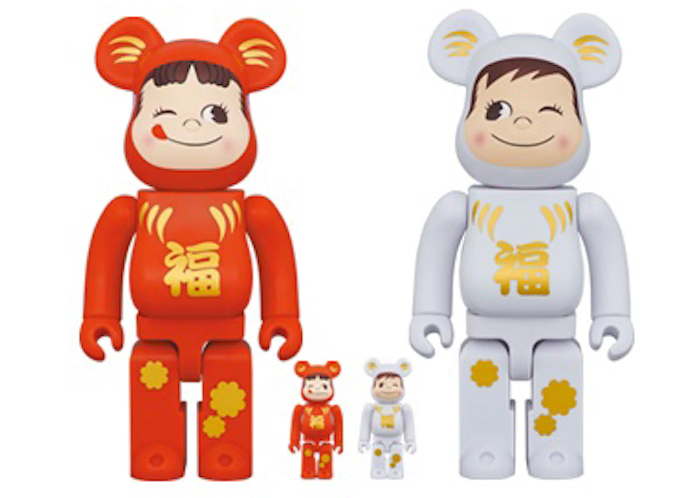 Bearbrick Daruma Peko-chan & Poco-chan 100% & 400% Set of 4 Red/White