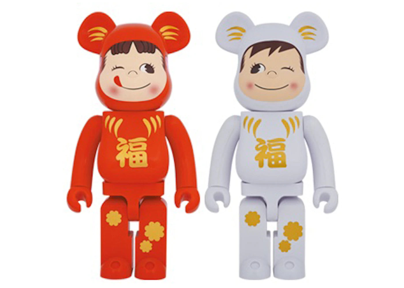 Bearbrick Daruma Peko-chan & Poco-chan 1000% Set Red/White