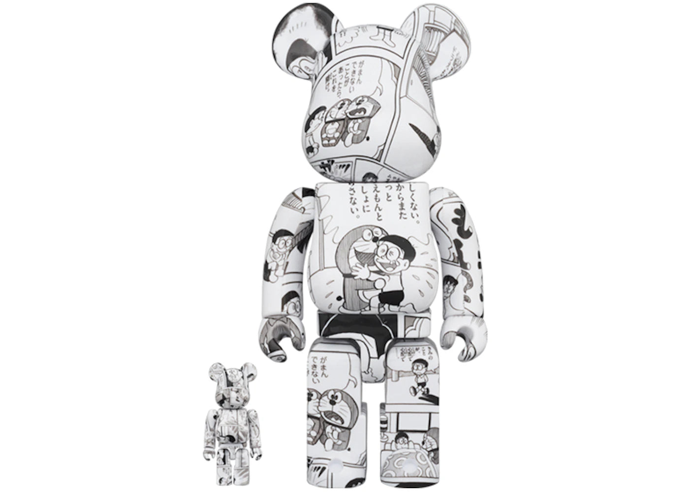 Bearbrick Doraemon (Comic Ver.) 100% & 400% Set Black & White