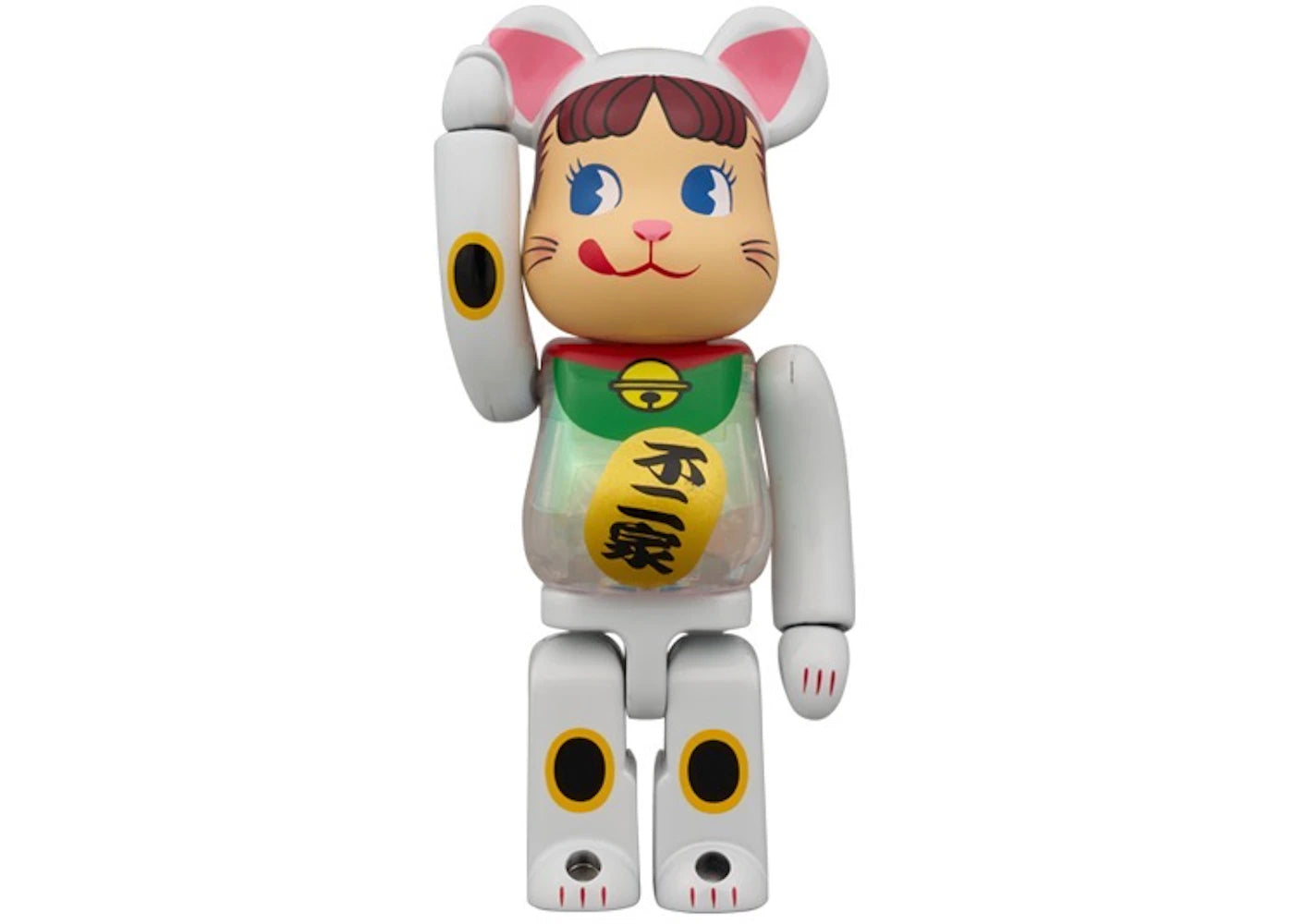 Style Code bearbrick-lucky-cat-peko-chan-white-plated-luminescent-milky-100-400-set