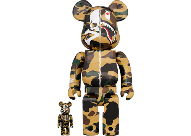 The Bearbrick Mastermind vs Bape(R) 100% & 400% Set Yellow Camo is now available at Side Kicks!