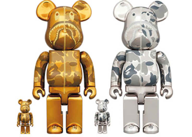 Bearbrick x BAPE Camo Shark 100% & 400% 4-Pc Set Gold/Silver