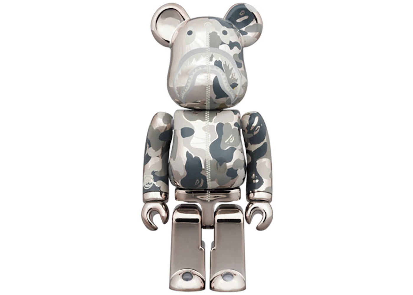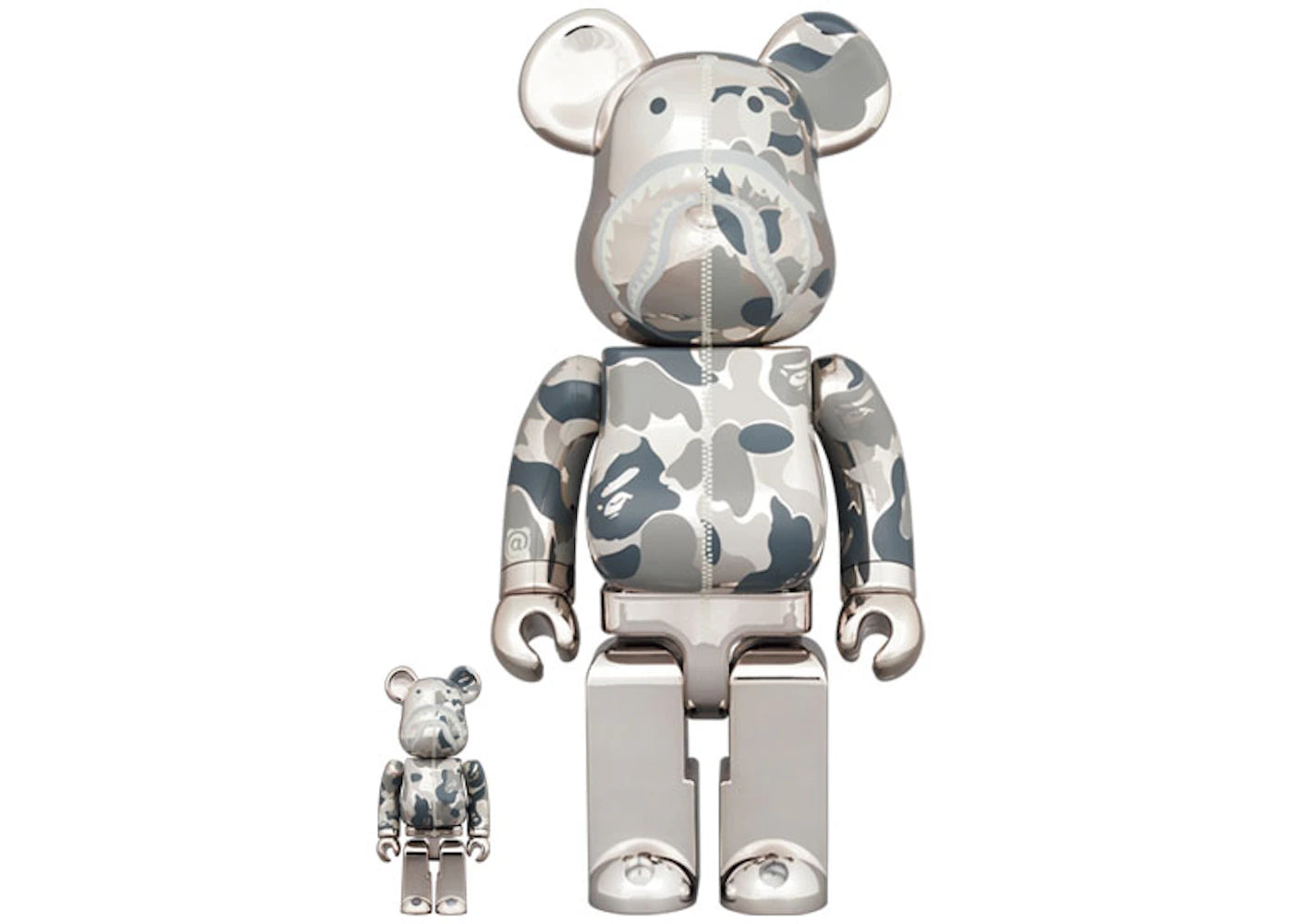 Bearbrick x BAPE Camo Shark 100% & 400% Set Silver