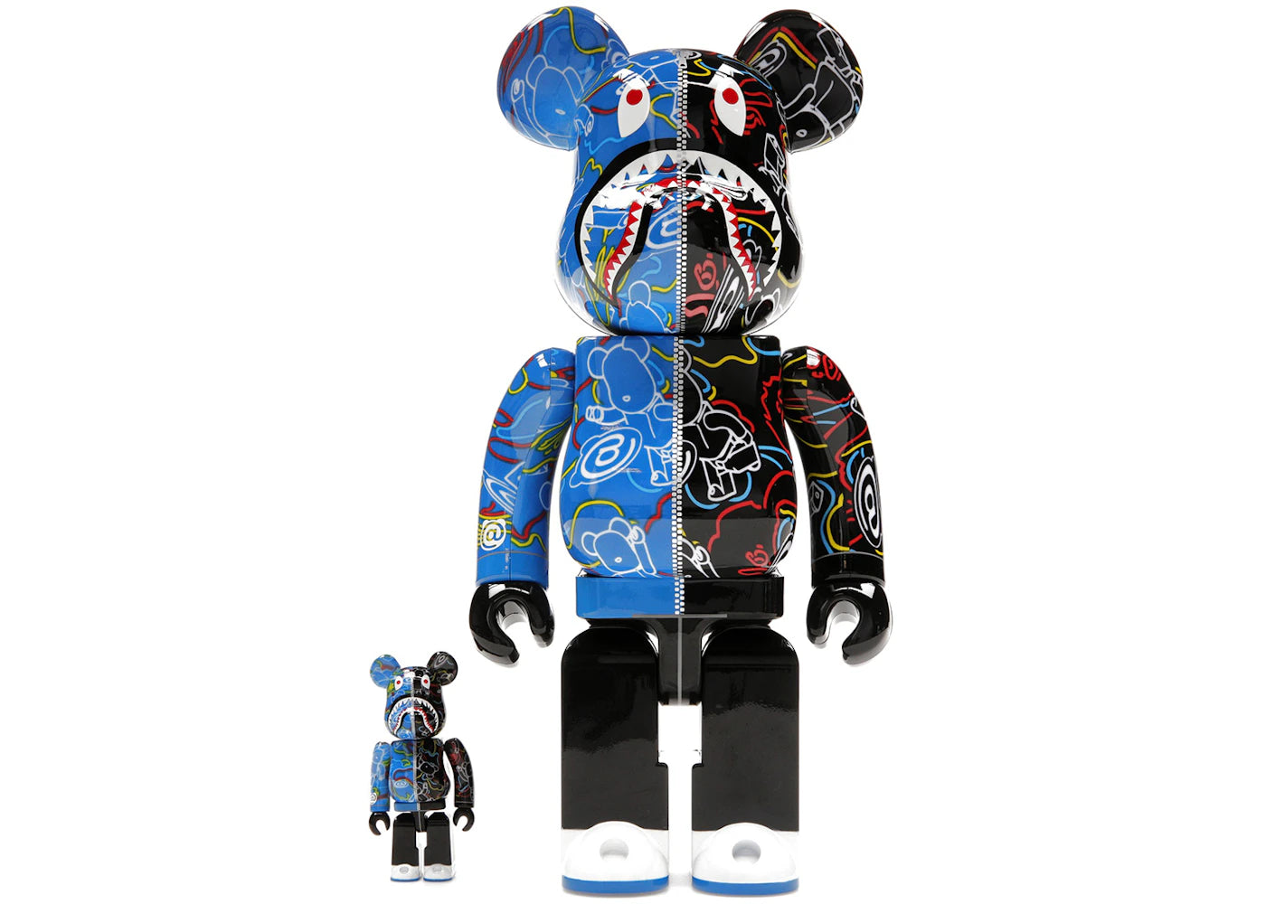 Bearbrick x BAPE Line Camo Shark 100% & 400% Set Blue/Black