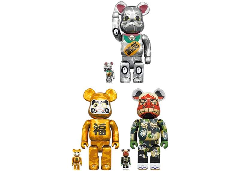 Bearbrick x BAPE Lion Dance, Daruma and Maneki Neko 100% & 400% 6-Pc Set Multi