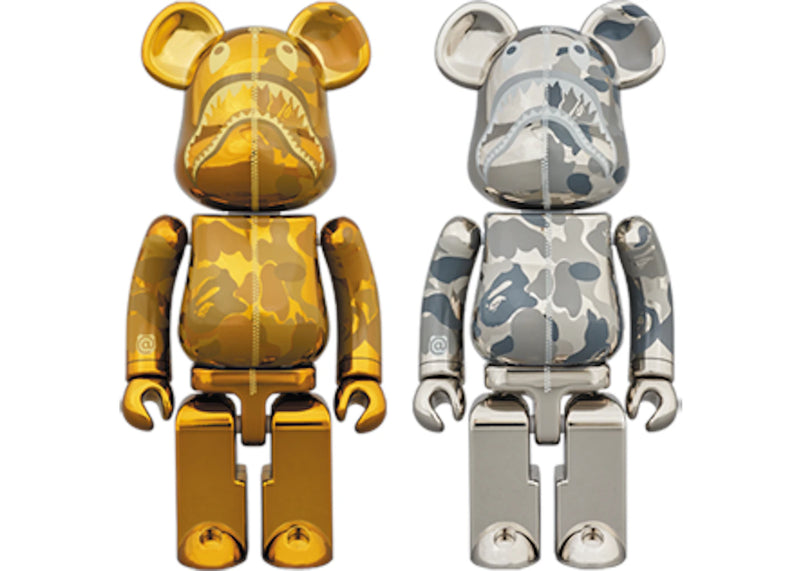 Bearbrick x BAPE Superalloy Camo Shark 200% Set Gold/Silver