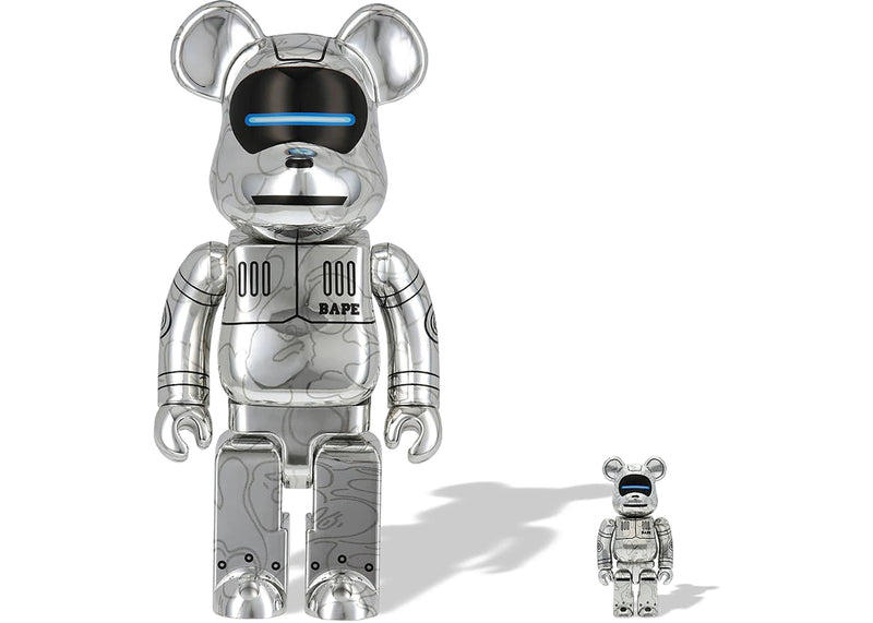 Bearbrick x BAPE x Hajime Sorayama Baby Milo 100% & 400% Set Silver