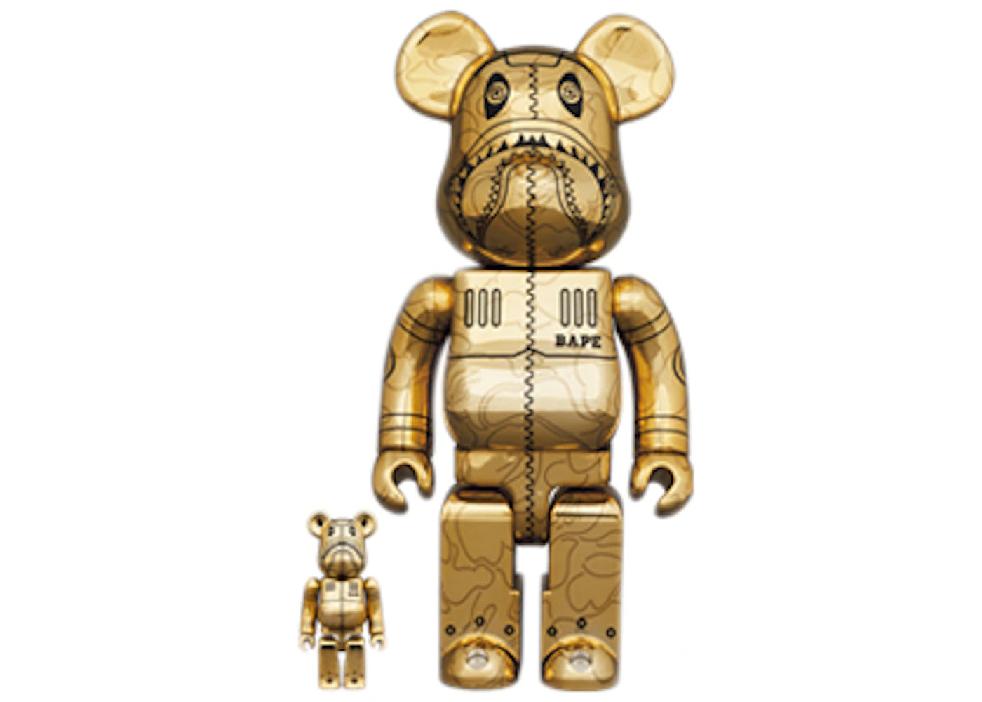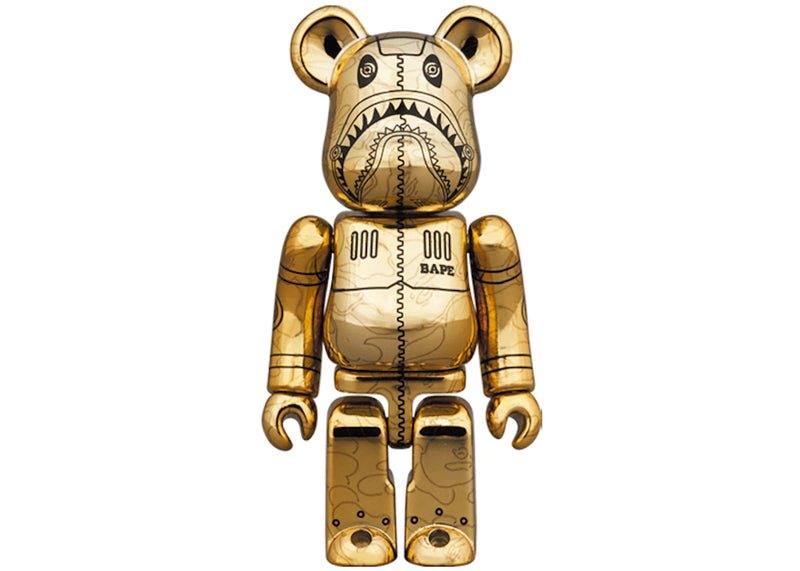 Bearbrick x BAPE x Hajime Sorayama Camo Shark 100% & 400% Set Gold