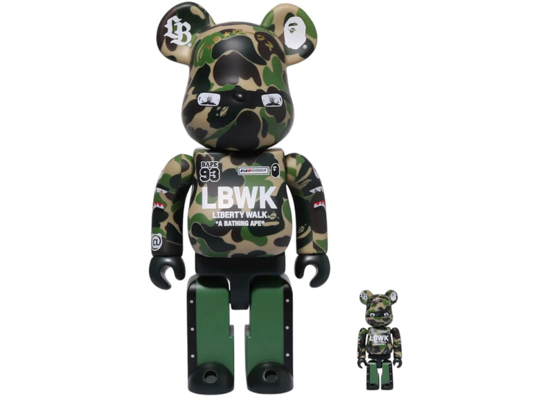 Bearbrick x BAPE XLBWK Livaken Knu ABC Camo 100% & 400% Set Green