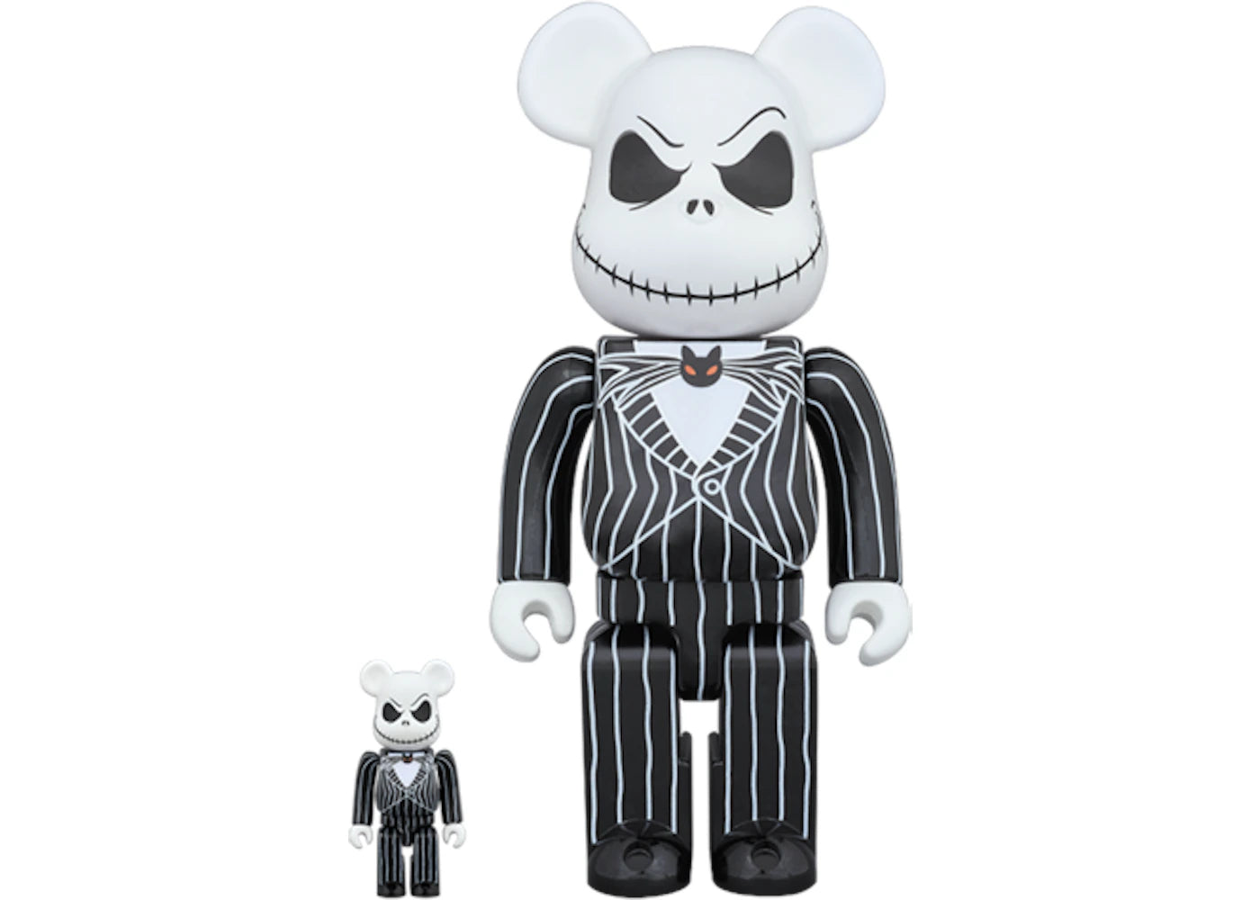 Bearbrick x Disney Tim Burton's The Nightmare Before Christmas Jack Skellington 100% & 400% Set Black