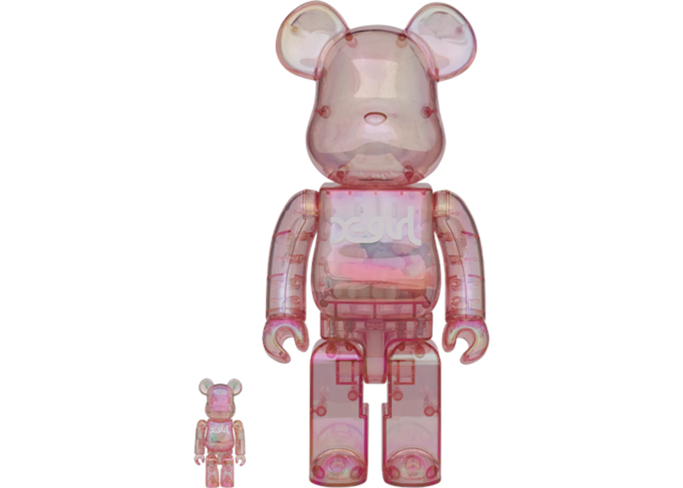 The Bearbrick X-girl 2020 100% & 400% Set includes two translucent figures with hidden shapes inside the torso. Blue, red, green, and yellow shapes illuminate in the dark, producing a...
