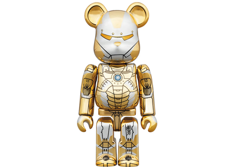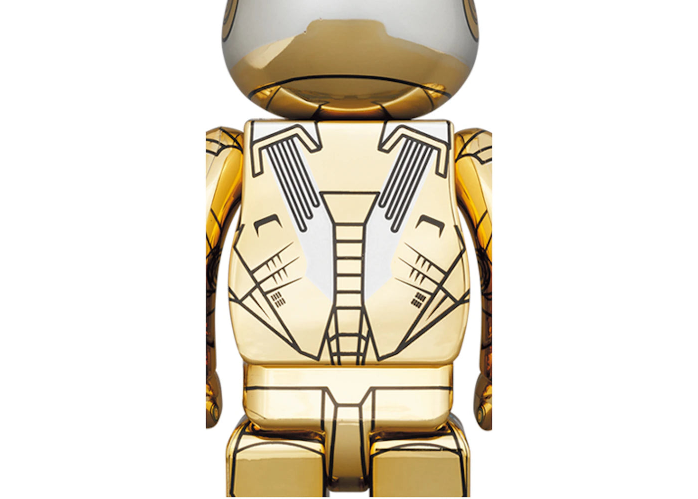 Bearbrick x Hajime Sorayama x Marvel Iron Man Reverse 100% & 400% Set Gold/Silver