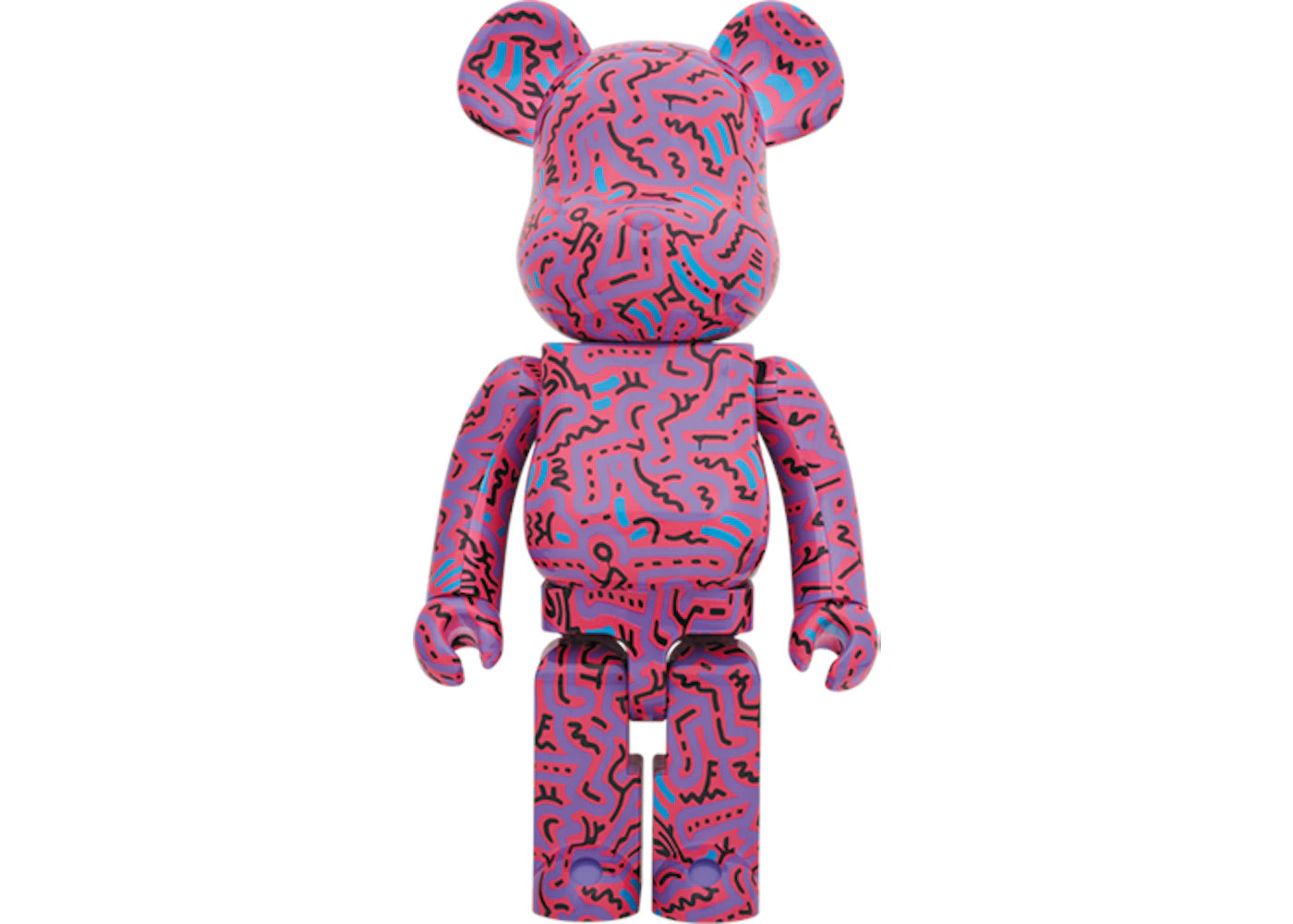 The Medicom Toy x Keith Haring collaboration presents a limited-edition 1000% Bearbrick figurine. This 27.5-inch (70 cm) collectible features Haring's signature pop-graffiti style with a pink base, blue and black...