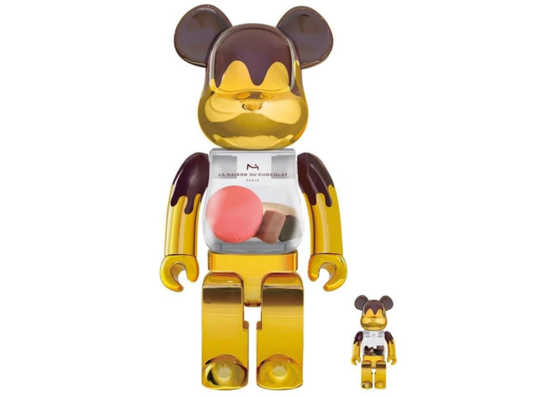 The Bearbrick x La Maison du Chocolat 100% & 400% Set Brown/Gold is now available at Side Kicks!