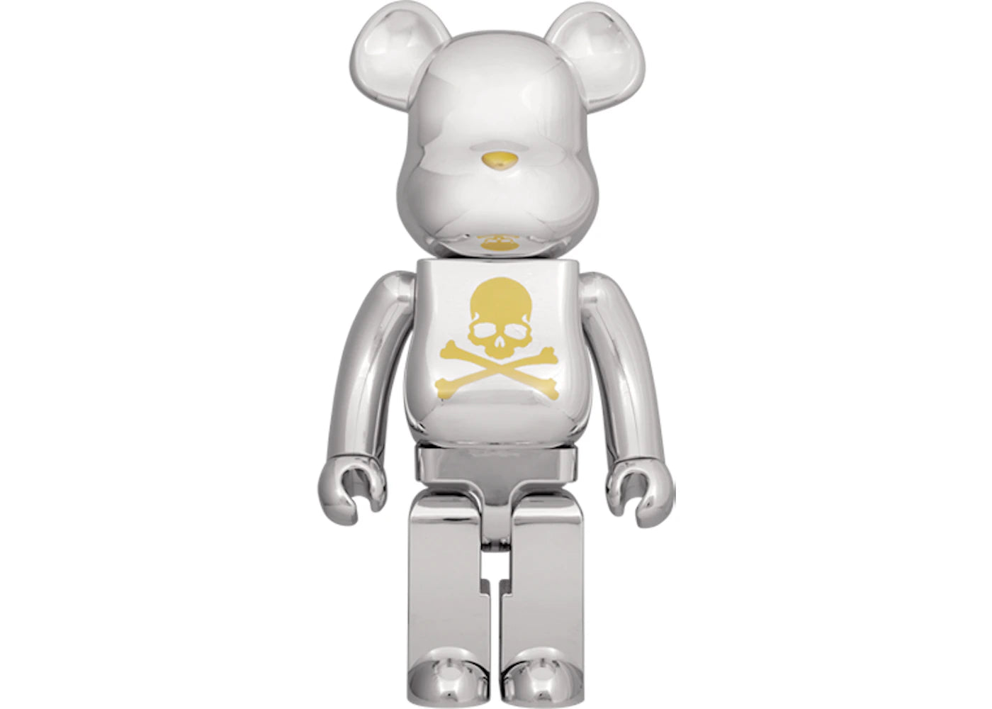 The Medicom Toy x mastermind JAPAN 1000% Bearbrick stands 27.5 inches tall with a silver chrome finish and gold accents. It features the signature mastermind skull and bones on the...