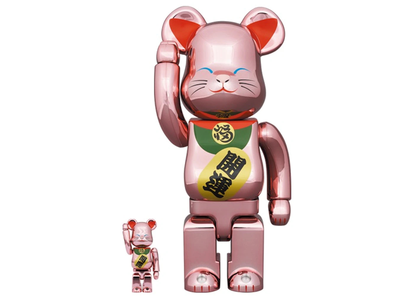 The Bearbrick x Medicom Toy Maneki Neko Good Luck Peach Gold Plated 100% & 400% Set is now available at Side Kicks!...