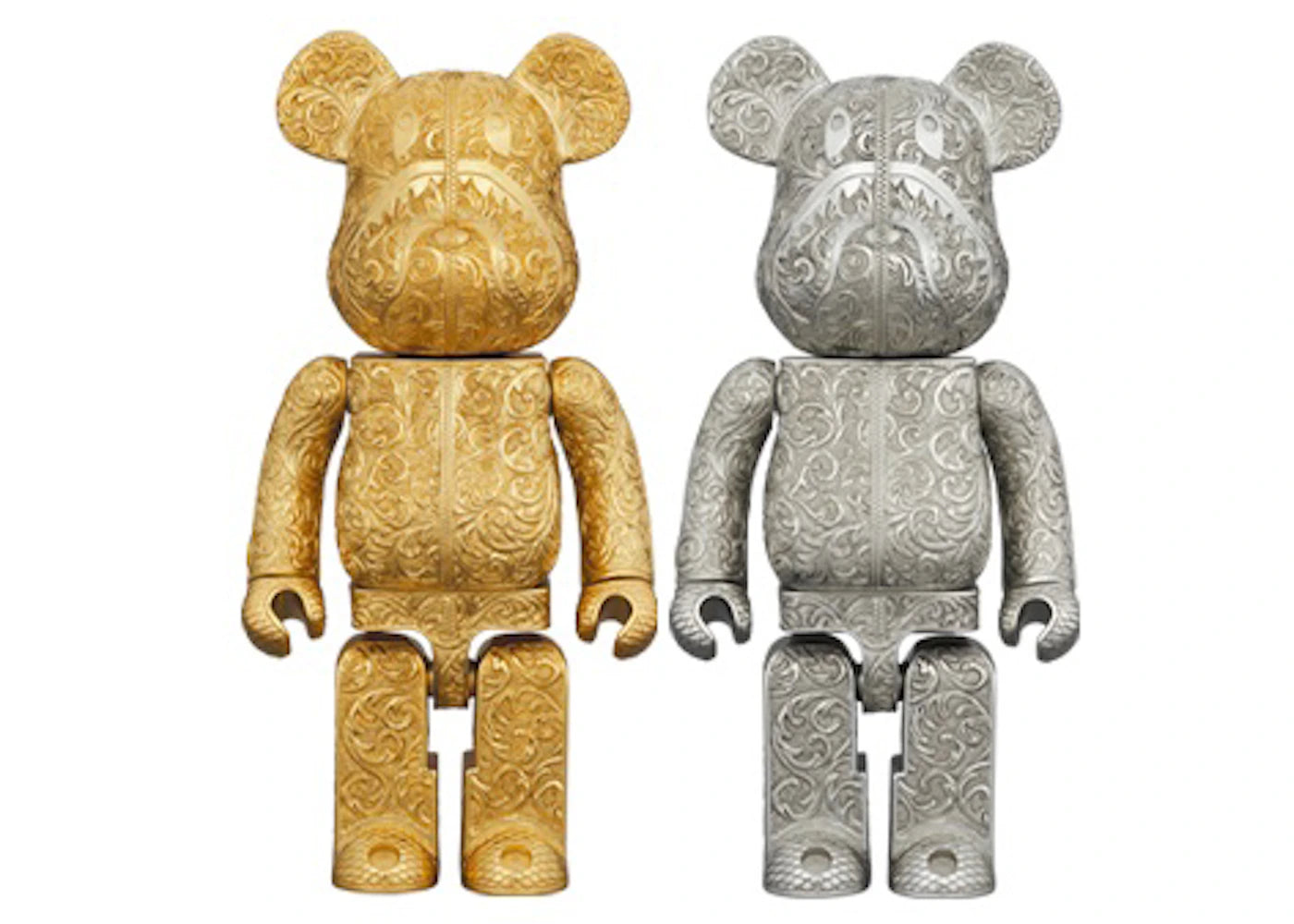 Bearbrick x Royal Selangor x BAPE Shark 400% Set Gold/Silver