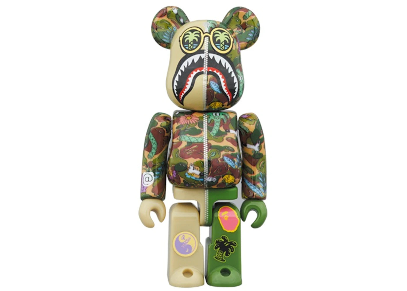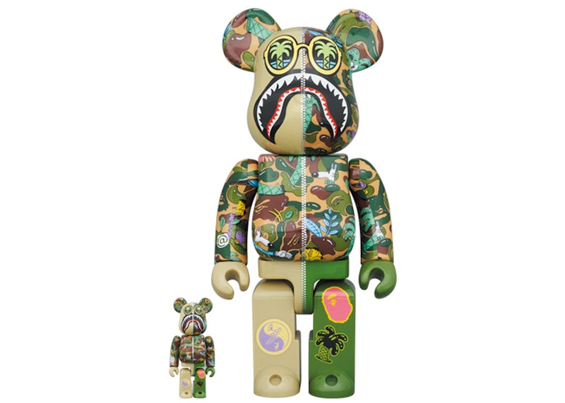 Bearbrick x Steven Harrington x BAPE Shark 100% & 400% Set Green Camo