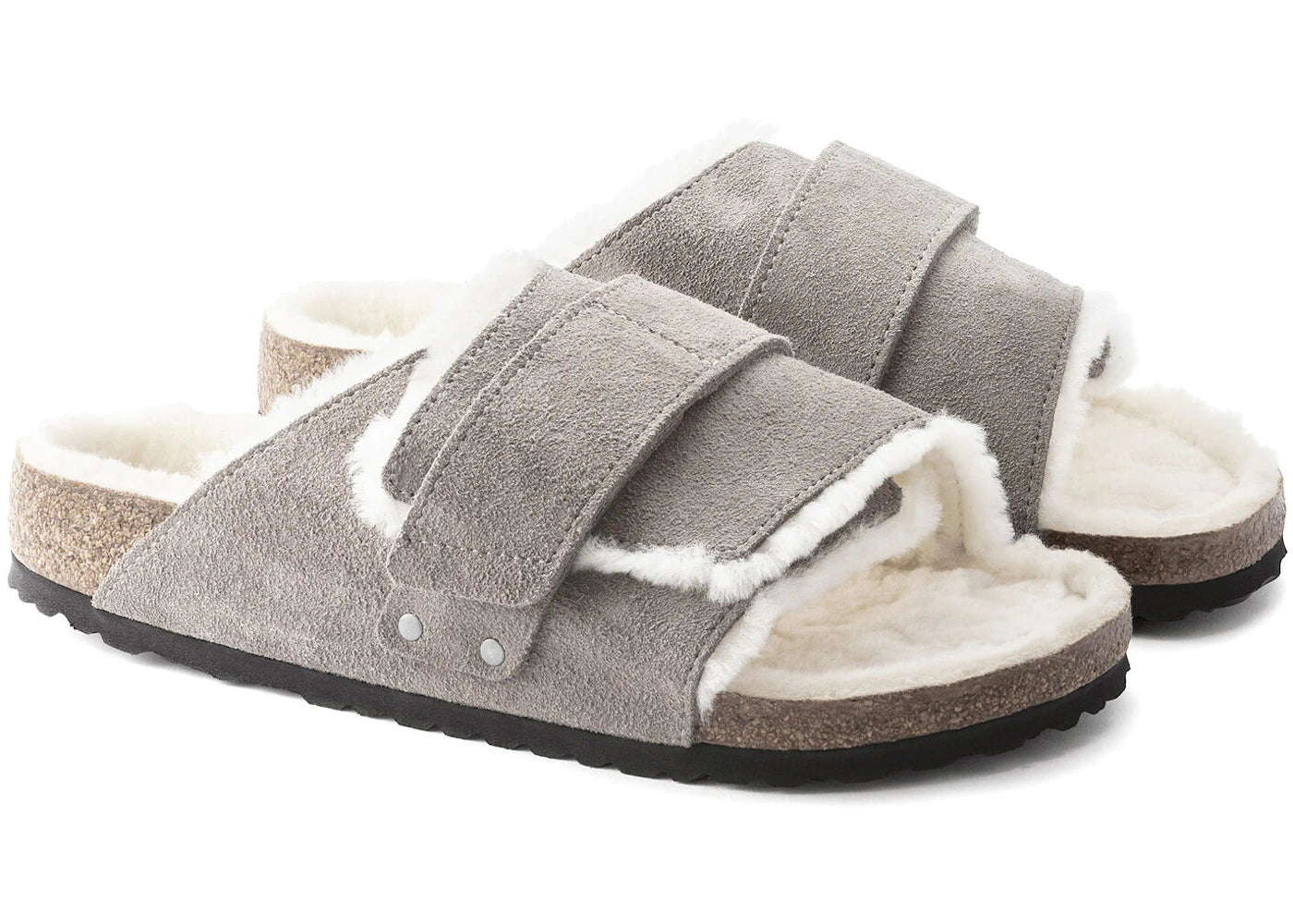 The Birkenstock Kyoto Shearling Suede Stone Coin is now available at Side Kicks!