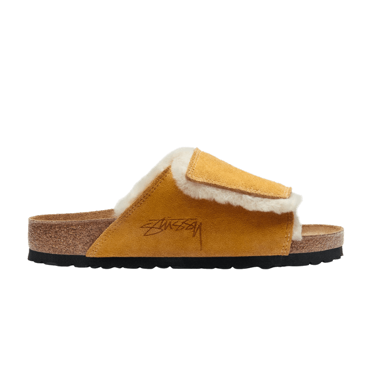 The Birkenstock Solana Shearling Slide Stussy Caramel is now available at Side Kicks!