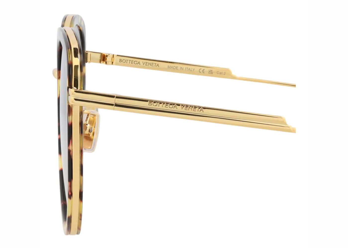 The Bottega Veneta Cat Eye Frame Acetate Sunglasses Havana/Gold Brown (BV0301SK-30011983-002-10209) is now available at Side Kicks!