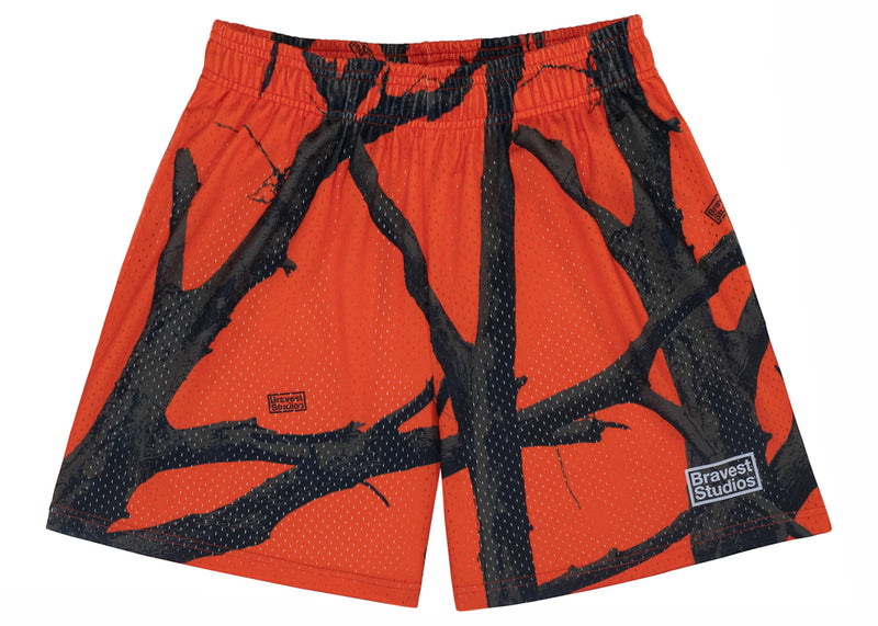 The Bravest Studios Tree Camo Shorts Orange is now available at Side Kicks!