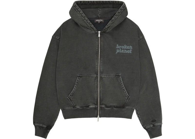 Broken Planet Basics Zip-Up Hoodie Washed Soot Black