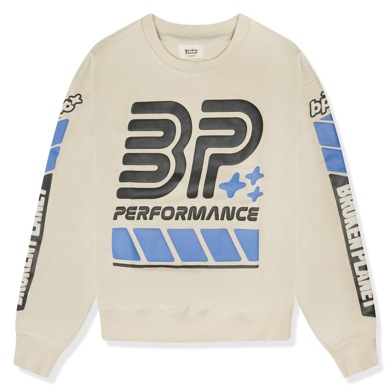 The Broken Planet Market BP Beige Performance Crewneck is now available at Side Kicks!