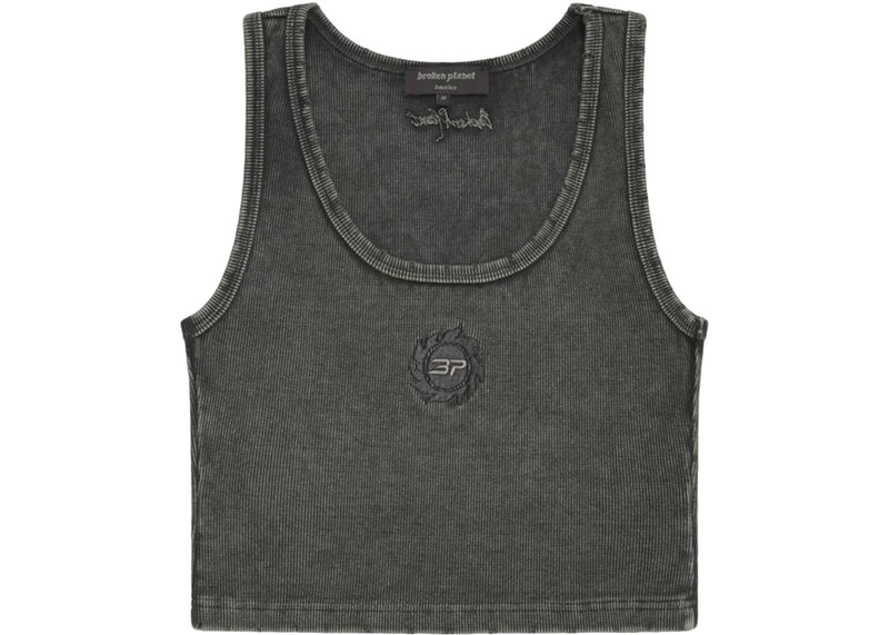The Broken Planet Women's Washed Ribbed Tank Top Washed Soot Black is now available at Side Kicks!