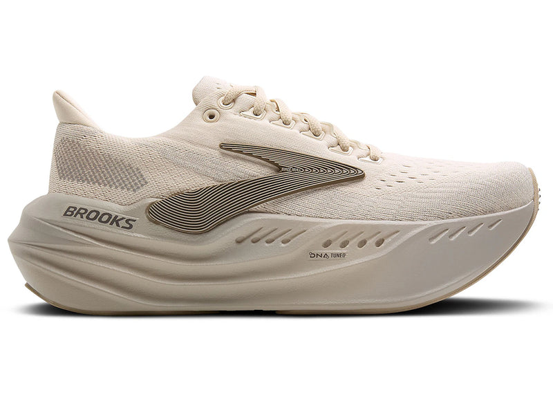 The Brooks Glycerin Max Almond Peach London Fog White (Women's) is now available at Side Kicks!